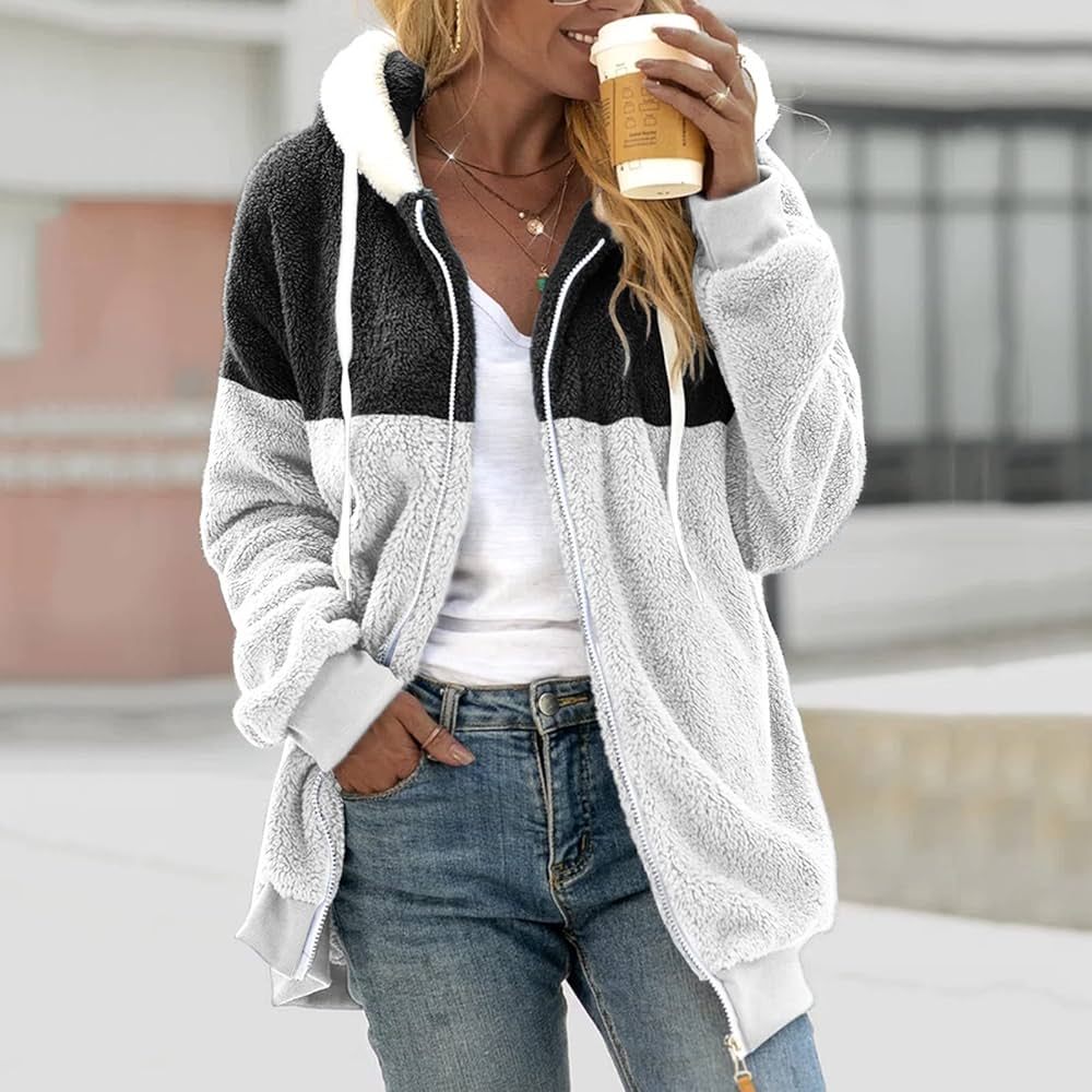 Wolf Jacket With Fleece Zipper And 30 Women S Coats Stitching Three Pocket Soft Hooded Pullover Black 4 S At Amazon Women S Coats Shop