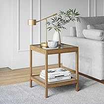 Amazon Com Nathan James Asher Mid Century Rectangle Coffee Table Glass Top And Rustic Oak Storage Shelf With Sleek Brass Metal Legs Gold Home Kitchen